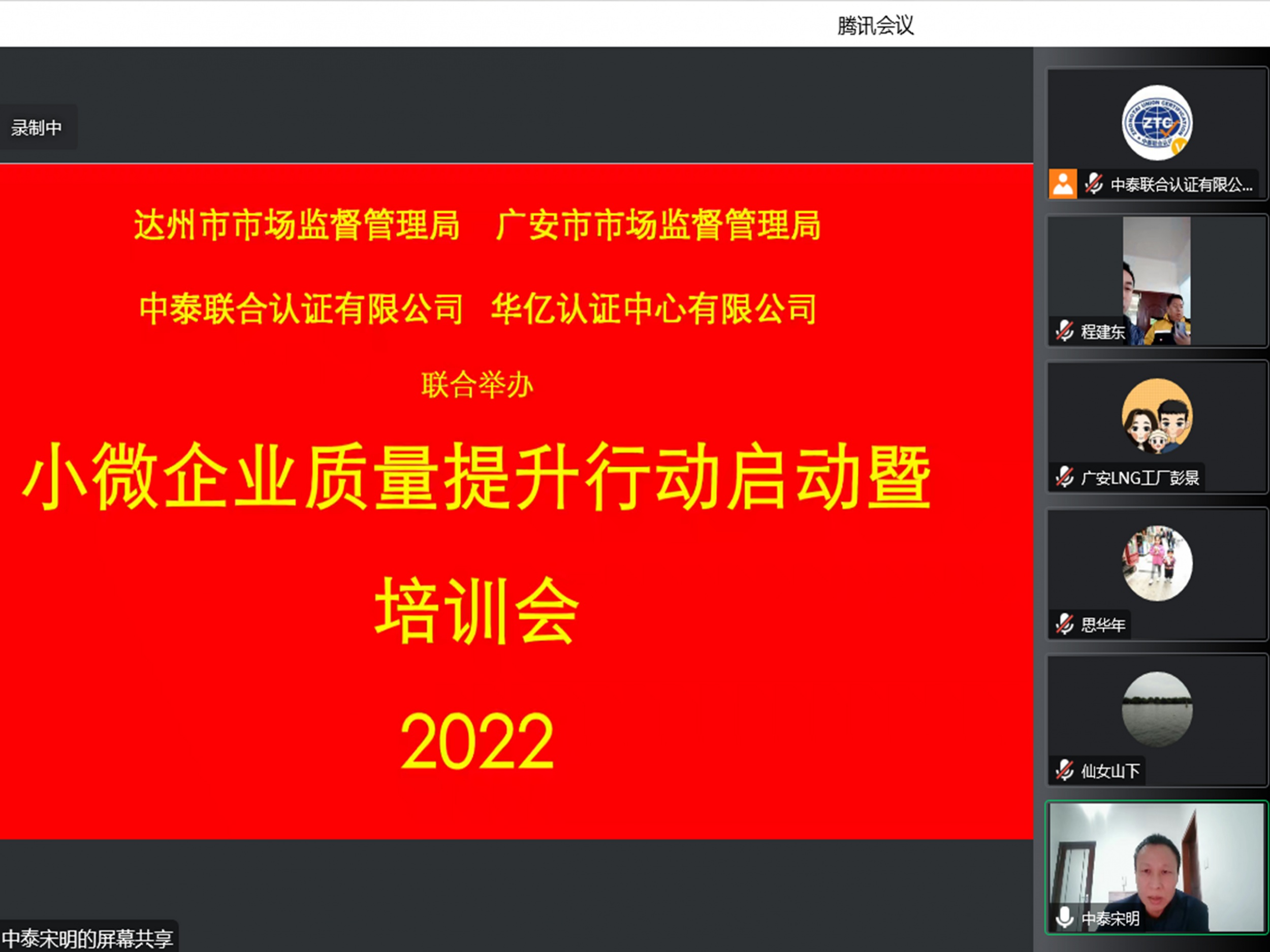 按照國家市場監督管理總局“小微企業質量管理體系認證提升行動”要求和“不斷推動提升行動走實走深,讓更多小微企業受益”以及四川省市場監督管理局“關于深入學習貫徹黨的二十大精神暨開展小微企業質量管理體系認證提升行動”會議號召。中泰聯合認證有限公司積極響應,秉承攜手企業共同、持續進步的目標。在12月9日開始聯系省局指示的地方局,通過線上培訓方式,分別舉辦3期《四川省小微企業質量提升行動啟動會議》。